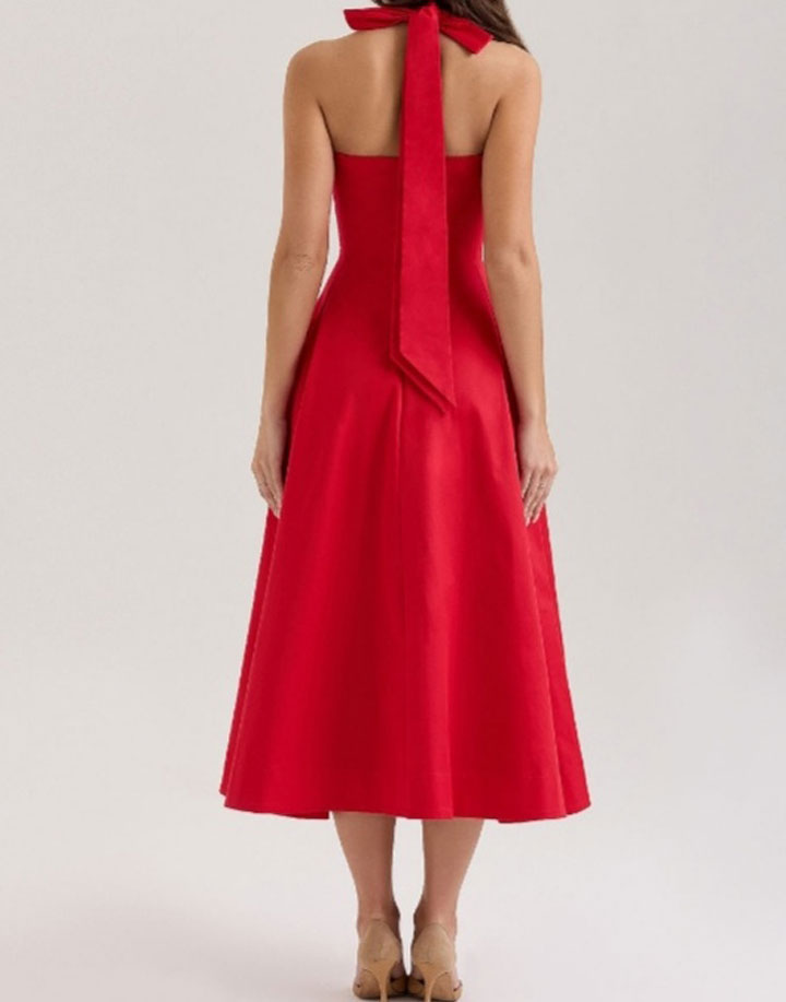 Missy Missi Ladies Midi Dress Ruffle Hem with Lantern Sleeves Red Medium